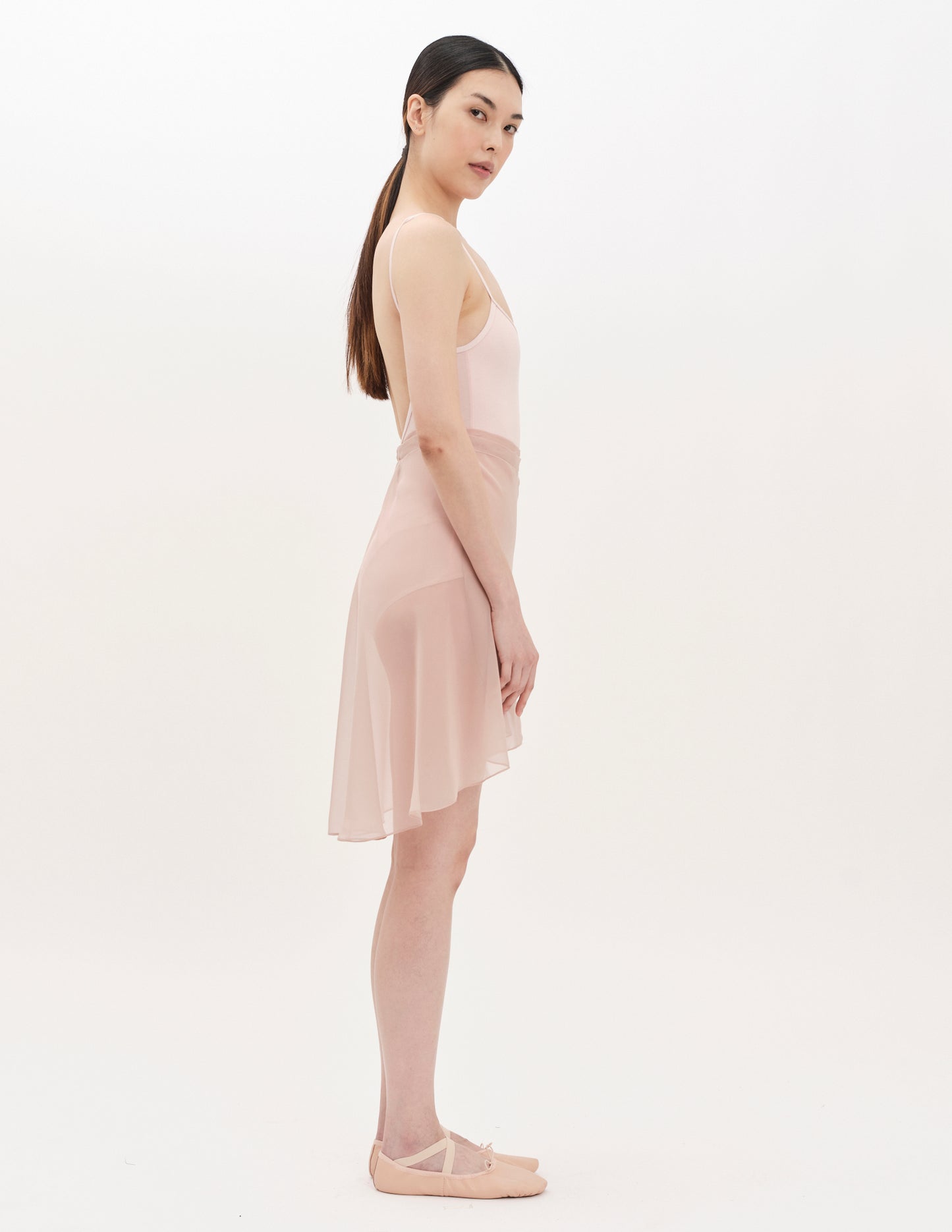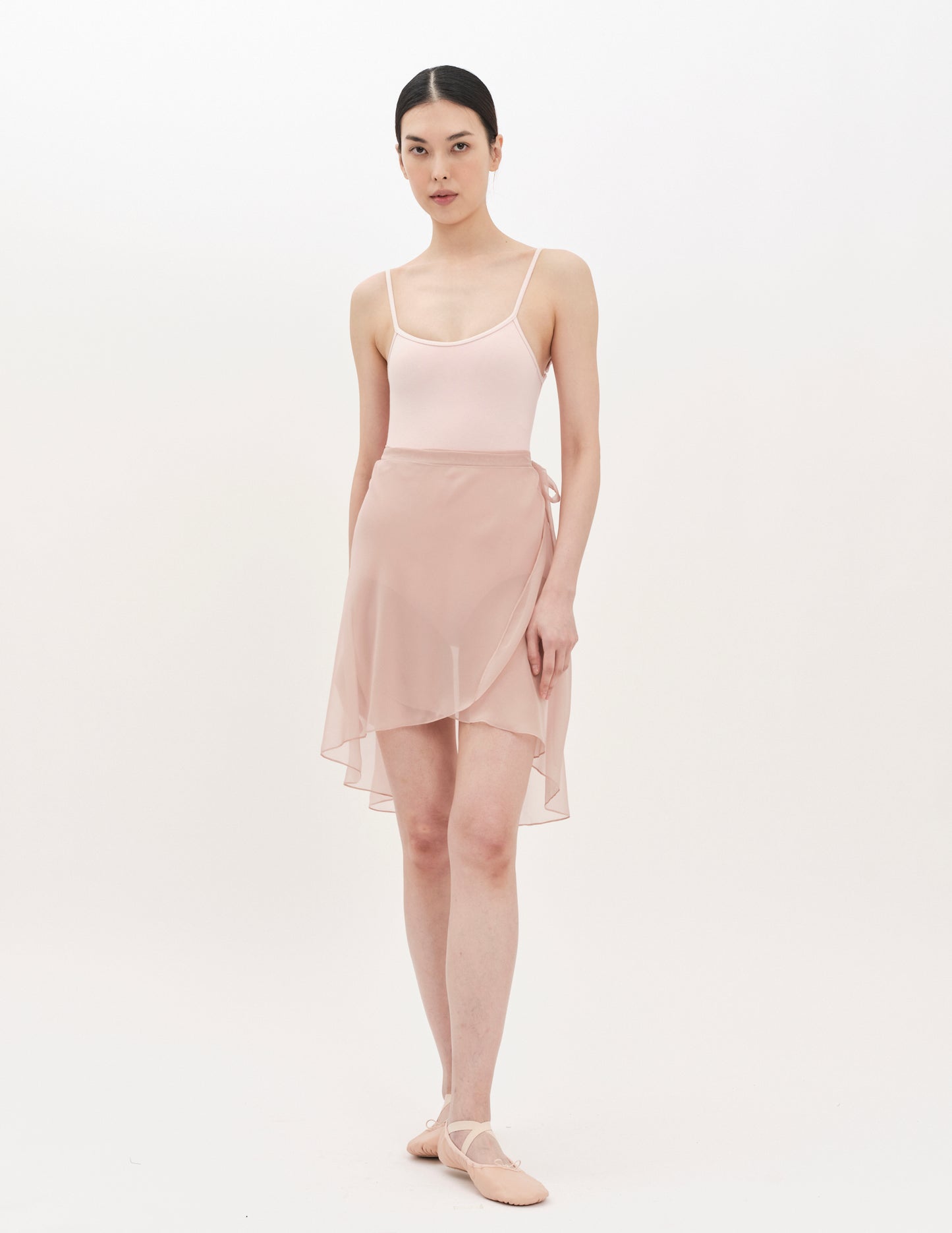 mini wrap skirt in chiffon featuring adjustable waist ties and a romantic silhouette.